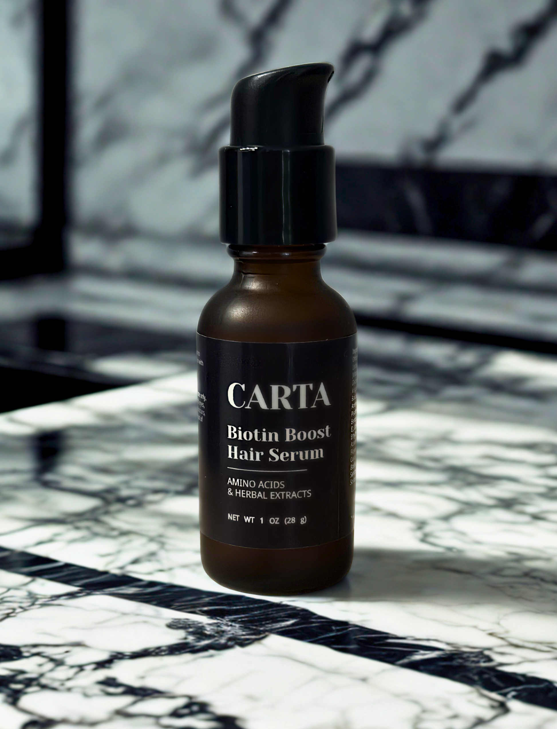 Elevate your hair care ritual with CARTA Biotin Boost Hair Serum—a concentrated blend of biotin, amino acids, and herbal extracts designed to restore vitality and brilliance to every strand. This lightweight, fast-absorbing formula helps reinforce hair structure, boost resilience, and leave your hair smoother, softer, and more radiant.